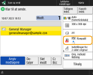 Denne funktion kan kun benyttes hvis du har angivet en e-mailadresse eller filserver som modtageren.