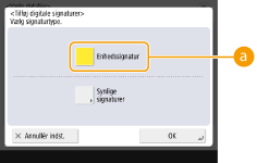 <Enhedssignatur>Navnet på maskinen føjes til filen som en signatur. Læseren kan verificere, at filen er scannet fra maskinen.