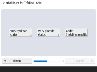 Angiv indstillingerne for netværksforbindelsen. ![]() ![]() Tryk på <Til> for <Brug IPv4> eller <Brug IPv6>, og tryk på <Næste>. Du kan også anvende både IPv4 og IPv6. Hvis du trykker på <Fra> for <Brug IPv4> og <Brug IPv6> og trykker på <OK>, skal du springe netværksindstillingerne over og fortsætte til trin 9. ![]() Hvis du trykker på <Til> for <Brug IPv4>, skal du angive følgende indstillinger. ![]() Du kan få IP-adressen ved at trykke på <DHCP> eller <Auto-IP> og trykke på <Næste> eller <OK>. Du kan indstille IP-adressen manuelt ved at rydde markeringen for <DHCP> eller <Auto-IP>, trykke på <IP-adresse>, <Subnetmaske> og <Gatewayadresse> for at angive hver enkelt værdi og trykke på <Næste> eller <OK>. For informationer om IPv4-adresseindstillingerne kan du se Indstilling af en IPv4-adresse. ![]() Hvis du trykker på <Til> for <Brug IPv6>, skal du angive følgende indstillinger. ![]() Tryk på <Til> for at anvende den dynamiske adresse, eller tryk på <Fra> for ikke at anvende den dynamiske adresse, og tryk på <Næste>. For informationer om IPv6-adresserne kan du se Indstilling af en IPv6-adresse. ![]() Når du har angivet den dynamiske adresse, skal du angive følgende indstillinger. ![]() Tryk på <Til> for at anvende den manuelle adresse, eller tryk på <Fra> for ikke at anvende den manuelle adresse, og tryk på <Næste>. For at anvende den manuelle adresse skal du trykke på <Manuel adresse>, <Præfiks-længde> og <Standard routeradresse> for at indtaste hver værdi. ![]() Når du har angivet den manuelle adresse, skal du angive følgende indstillinger. ![]() Tryk på <Til> for at anvende DHCPv6 eller <Fra> for ikke at anvende DHCPv6, og tryk på <OK>. | |