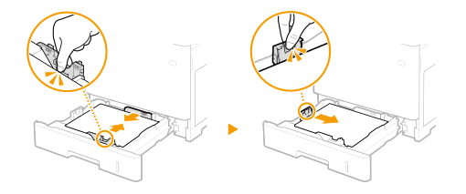 Samalla, kun painat lukituksen vapautusvipua, kohdista paperinohjaimen ulkonema vastaavan paperikoon merkintään.