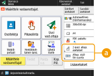 Perustoimintojen näytössä olevia asetuspainikkeita (kopio, faksi ja skannaus) voi vaihtaa muihin asetuspainikkeisiin kohdassa <Lisäasetukset>. Sijoittamalla usein käytetyt asetuspainikkeet perustoimintojen näyttöön voit käyttää toimintoja tehokkaammin. Voit lisäksi näyttää kullekin käyttäjälle mukautetun perustoimintojen näytön kirjautumalla sisään henkilökohtaisen todentamisen hallinnalla.