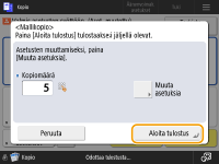 Tulosta määrittämäsi kopiomäärä valitsemalla <Aloita tulostus>. Jos valitsit vaiheessa 5 <Kaikki sivut>, tulostetaan yksi kopio vähemmän kuin määritetty sivumäärä. Jos valitsit vaiheessa 5 <Määritetyt sivut>, tulostetaan kaikki kopiot.