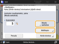 Muuta asetukset valitsemalla <Muuta asetuksia>. <Mallikopio> näkyy, kun asetukset on muutettu. Kopioi malli uudelleen.