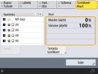 Voit tarkistaa tarvikkeiden jäljellä olevat määrät etäkäyttöliittymän kautta. Laitteen tilan tarkistaminen