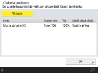 Tarkista tarvikkeiden tilatiedot.