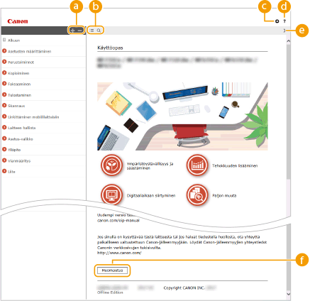 Näet napsauttamalla tietoja Käyttöopas -oppaan lukemisesta, hakujen suorittamisesta sekä muita tietoja.