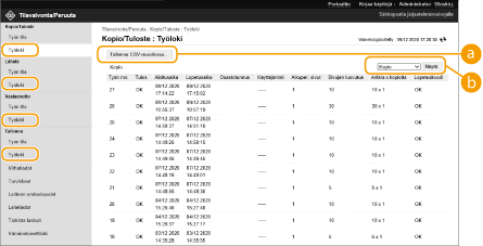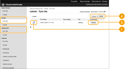 [Työn tila] kohdassa [Lähetä] tai [Vastaanotto]