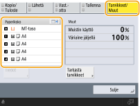 Paperi ei välttämättä ole jumissa tarkistamassasi sijainnissa. Noudata myös tässä tapauksessa näytön ohjeita ja tarkista kaikki sijainnit. Näytössä näkyy toistuvasti ilmoitus paperitukoksesta, kunnes tukos on poistettu. Jos valitset <Sulje> paperitukoksesta ilmoittavassa näytössä, voit jatkaa toimintoja ja määrittää asetuksia poistamatta paperitukosta välittömästi. Älä poista paperia muusta kuin näytössä näkyvästä paperitukoksen sijainnista. Se voi aiheuttaa paperitukoksia muissa sijainneissa tai sivujen puuttumista tulostetuissa asiakirjoissa. |