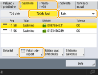 2 | Valige loendist <Saatmine> või <Vastuvõtt> ja vajutage nuppu <Side hal. aruanne>. ![]() |