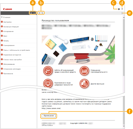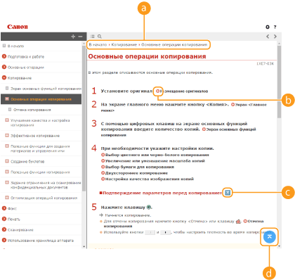 Служит для отображения указаний по просмотру документа Руководство пользователя, выполнению поиска и прочим операциям.
