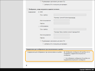 Если по какой-либо причине содержимое не отображается, выберите, следует ли отображать экран с сообщениями об ошибках.