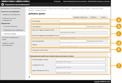 Настройка параметра [Условия] в случае использования серверов Active Directory