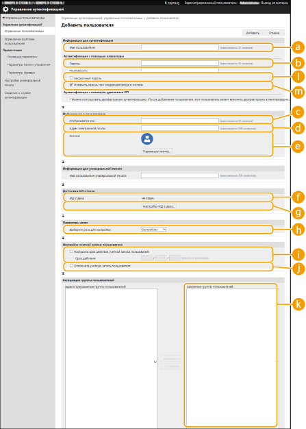 uid | Да | 1–32 символа | Управляющие символы, однобайтные пробелы и следующие символы: \ / : * ? | < > [ ] ; , = + @ " | ![]() | Необходимо ввести при импорте. «@» может быть доступно в зависимости от настройки. <Разрешить использование @ в имени пользователя> |