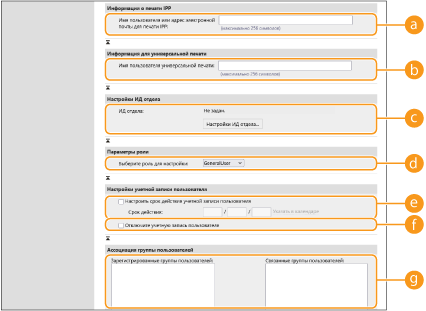 [User Name or E-Mail Address for IPP Print]Чтобы связать IPP-печать с пользователем, укажите адрес электронной почты, используемый для IPP-печати.