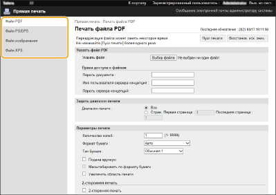С помощью Remote UI (Удаленный ИП) файлы, сохраненные на компьютере или в сети, можно печатать напрямую на аппарате без использования драйвера принтера. Для этого не нужно открывать файлы на компьютере.