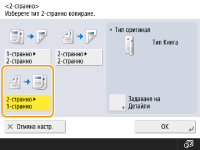 ![]() | Можете да копирате 1-странни оригинали от двете страни на хартията. Можете да копирате и 2-странен оригинал от двете страни на хартията или на два отделни листа. Копиране 1-странно към 2-странно Копиране 2-странно към 2-странно Копиране 2-странно към 1-странно |