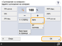 ![]() | Можете да увеличавате или намалявате за автоматично съгласуване с избрания формат на хартията. Увеличаване и намаляване на копията за вместване във формата на хартията |