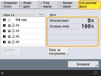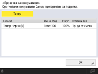 Можете да проверите и оставащо количество консумативи от Remote UI (Потребителски интерфейс за отдалечено управление). Проверка на състоянието на машината |