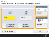 Якщо натиснути кнопку <Змінити> в параметрі <Формат оригіналу>, можна вибрати формат оригіналу, а натиснувши кнопку <Змінити> в параметрі <Формат паперу>, можна вибрати формат паперу.