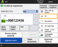 Перевірка загальної кількості вказаних адресатівЗагальна кількість зазначених адресатів відображається в правому верхньому кутку екрана. Таким чином перед надсиланням можна підтвердити, що кількість адресатів указано правильно. ![]() Надсилання з інформацією про відправникаФаксимільні документи можна надсилати з іменем і номером факсу відправника. <Ідентифікатор передавання термінала> Перевірка стану надісланих документівНа екрані <Монітор стану> можна перевірити стан надісланих документів. Цей екран дає змогу повторно надіслати факси або скасувати надсилання після перевірки статусів. Перевірка стану й журналу надісланих і отриманих документів Коли для параметра <Відображати сповіщення про прийняття завдання> встановлено значення <Увімк.>, екран <Монітор стану> можна відкрити з наступного екрана, який відображається після отримання завдання надсилання. <Відображати сповіщення про прийняття завдання> ![]() У разі виникнення помилки передавання, якщо лінія одержувача зайнятаАпарат автоматично повторює набір через певний період часу. Можна змінювати такі параметри, як кількість спроб повторного набору та проміжок часу між ними. <Автоматичний повторний набір> Друк звіту з результатами надсиланняЯкщо на екрані основних функцій факсу натиснути <Додаткові функції> <Звіт про рез. передавання>, можна ввімкнути автоматичний друк звітів із результатами надсилання.Щоб настроїти це для кожного завдання з меню <Додаткові функції>, потрібно вибрати <Тільки в разі помилки> або <Вимк.> у розділі <Звіт про рез. передавання>, а тоді встановити параметр <Дозволити друк з екрана Додаткові функції> на значення <Увімк.>. Якщо фотографії на надісланому зображенні надто темні або світлі, кольори фону кольорових оригіналів неможливо видалитиЯкість надісланих зображень може вдатися покращити, якщо виконано вказані нижче умови/параметри. Тип завдання: «Факс» (надсилання з пам’яті) або «Сканувати й надіслати» (факс/інтернет-факс) <Вибір кольору>: <Чорно-білий> (Сканувати й надіслати) <Тип оригіналу>: <Текст> <Насиченість> <Насиченість фону>: <Авто><Роздільна здатність>: 200 x 400 точок/дюйм, 300 x 300 точок/дюйм*, 400 x 400 точок/дюйм або 600 x 600 точок/дюйм* *Можна встановити для завдання «Сканувати й надіслати» <Пріоритет швидк./якості зображ. для Ч/Б сканування> Завдання надсилання через факс/інтернет-факс: <Пріоритет якості> (<Пріоритет швидк./якості зображ. для Ч/Б сканування>) |