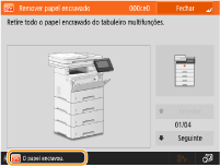(Contr. estado), o ecrã <Contr. estado> é apresentado. Neste ecrã, pode verificar o estado da impressão e da transmissão, bem como a quantidade restante de toner e o nível de memória.