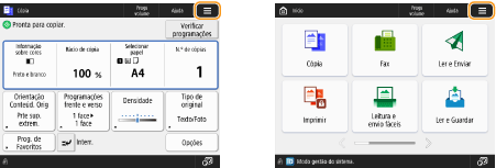 (Início). O ecrã <Início> apresenta uma lista de botões de função e atua como método de introdução de várias funções. Itens apresentados no ecrã <Início>