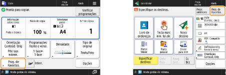 Se utilizar frequentemente as mesmas combinações de programações para cópia, fax e leitura, poderá ser útil gravar essas programações como <Prog. de Favoritos>.
