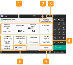 Carregar em <Cópia> (Ecrã <Início>) faz aparecer o ecrã das funções básicas de cópia.