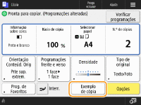 Dependendo do número de cópias e das programações, <Ex. de cópia> é apresentado para verificar o resultado da cópia, através da impressão de um exemplo de cópia. Verificar os resultados de cópia