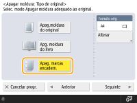 Se pretender ajustar a largura de cada rebordo de modo independente, carregue em <Apagar moldura do original> ou em <Apg. moldura do livro> e, em seguida, carregue em <Ajustar livremente> para introduzir as larguras a apagar.