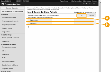 Utilize caracteres alfanuméricos para introduzir a palavra-passe da chave privada que foi programada para o ficheiro a gravar.
