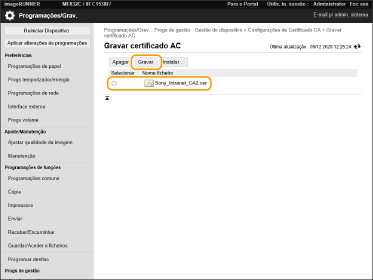 Gerir certificados da CAPode verificar as programações detalhadas ou apagar certificados da CA no ecrã apresentado no passo 4.