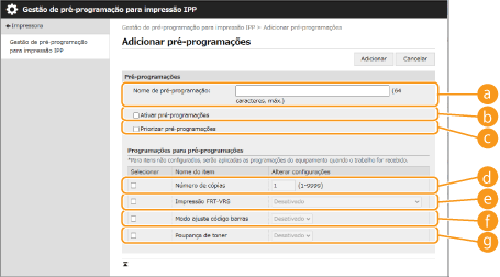 Clique em [Impressora]  [Gestão de pré-programação para impressão IPP].