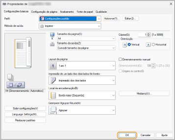 Especifique as programações de impressão conforme necessário e clique em [OK].