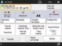 Quando carrega em <Ler e Guardar> no ecrã <Início> e depois carrega em <Rede> ou <Suporte de memória> para ler os originais, é apresentado o seguinte ecrã de programações.