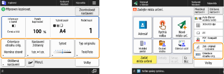 Tlačítka nastavení, která se zobrazují na obrazovce základních funkcí (pro kopírování, faxování a skenování), můžete změnit. Můžete také zobrazit jinou obrazovku základní ch funkcí, která bude přizpůsobená pro každého přihlášeného uživatele.