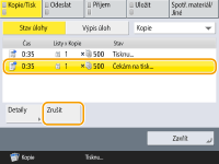(Stop) na ovládacím panelu, když úlohy čekají na zpracování, všechny kopírovací úlohy se pozastaví a poté se zobrazí hlášení <StopVyberte kopírovací úlohu, kterou chcete zrušit.> a seznam kopírovacích úloh. Z tohoto seznamu můžete vybrat kopírovací úlohu a zrušit ji stisknutím <Zrušit>. Chcete-li kopírování obnovit, stiskněte <Obnovit kopír.>. |