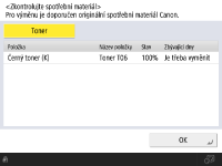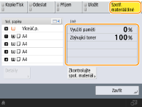 Stav zbývajícího množství spotřebního materiálu můžete zkontrolovat z Remote UI (Vzdálené UR). Kontrola stavu stroje