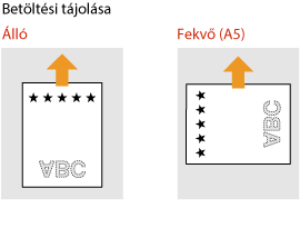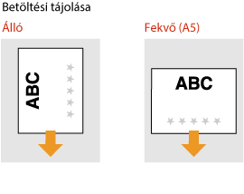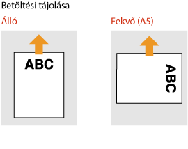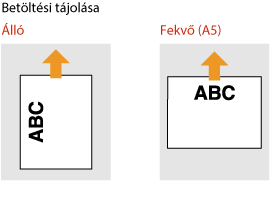 Ez a rész az előnyomott papír helyes tájolással történő behelyezésével foglalkozik. A papír papírfiókba vagy többcélú tálcába történő behelyezés ének általános eljárását a következő részben olvashatja: Alapvető papírbetöltési módszer.