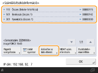 Az egyes MEAP-elemek számlálóadatait is ellenőrizheti. A 2. lépésben a képernyőn nyomja meg az <MEAP szám. ellenőrzés> gombot. Ha ugyanezen a képernyőn megnyomja az <Eszközinformáció/Más> <Ell.őriz:Eszkkonfiguráció> gombot, akkor a készülékre felszerelt kiegészítőket is ellenőrizheti.