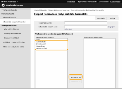 Felhasználói csoportokat jegyezhet be. A bejegyzett felhasználói csoportok között meg lehet osztani a felhasználói csoportok címlistáit.