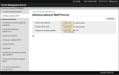 Jeżeli do aplikacji MEAP nie dołączono Kodu dostępowego licencji, plik licencji zostanie przesłany przez dostawcę aplikacji MEAP. Klucz licencji oraz plik licencji opisany w niniejszej sekcji nie są wymagane. Aby uzyskać więcej informacji, zapoznaj się z instrukcją obsługi danej aplikacji MEAP.