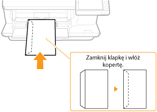 Koperty należy ładować do szuflady na papier lub do tacy uniwersalnej. Aby podczas drukowania na kopertach zapobiec zacięciu papieru i jego marszczeniu, pamiętaj, by wygładzić zagięcia na kopertach przed ich załadowaniem. Należy również zwrócić uwagę na umieszczenie ich we właściwej orientacji i odpowiednią stroną do góry.