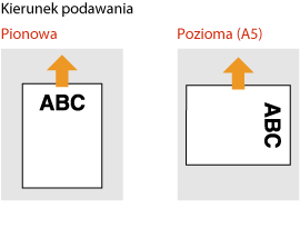 W przypadku wykonywania operacji kopiowania należy również zwrócić uwagę na orientację oryginalnego dokumentuNależy umieścić oryginał w podajniku stroną do skopiowania skierowaną w górę lub na szklanej płycie roboczej stroną do skopiowania skierowaną w dół tak, jak pokazano na poniższych ilustracjach.