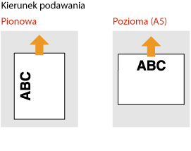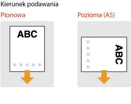 Ustawienie <Przełączanie metody podawania papieru>W przypadku drukowania na uprzednio zadrukowanym papierze konieczna jest zmiana kierunku ułożenia strony za każdym razem, gdy wykonywane jest drukowanie 1- i 2-stronne. Jednak jeśli opcja <Przełączanie metody podawania papieru> jest ustawiona na <Prioryt. Wydr. Str.>, wybrany kierunek ułożenia strony przy ładowaniu uprzednio zadrukowanego papieru do wydruku 2-stronnego może być również używany w przypadku druku 1-stronnego. Ustawienie to jest szczególnie przydatne, gdy wydruki 1-stronne są wykonywane tak samo często jak 2-stronne. <Przełączanie metody podawania papieru>