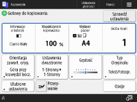 Naciskaj przyciski funkcji na ekranie <Strona główna>, aby wyświetlać ekrany podstawowych funkcji, z poziomu których można uzyskać dostęp do kopiowania, faksowania i skanowania. Pomimo że wyświetlane elementy i ustawienia ekranu podstawowych funkcji różnią się, w zależności od dostępnych funkcji, można zmienić te ustawienia zgodnie z własnymi potrzebami. Dostosowywanie ekranu podstawowych funkcji do własnych potrzeb