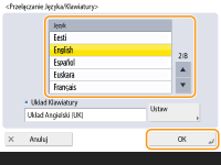 Naciśnij na <Przełączanie Języka/Klawiatury>, wybierz język z listy i naciśnij na <OK>.