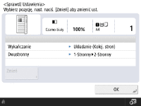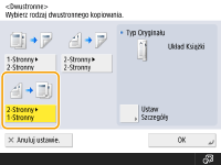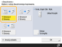 Podczas wykonywania dwustronnych kopii, funkcje niektórych ustawień, takich jak format i rodzaj papieru są ograniczone. Aby uzyskać więcej informacji, patrz Specyfikacja sprzętowa.