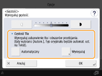 Pozwala wyregulować natężenie kolorów całego dokumentu. Przykładowo, zwiększenie natężenia kolorów kopii umożliwia łatwy odczyt niewyraźnych znaków zapisanych ołówkiem.