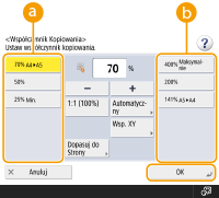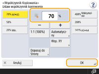 Można powiększyć lub pomniejszyć określając odpowiednią proporcję kopiowania (%). Można określić osobną proporcję dla krawędzi poziomej i pionowej.